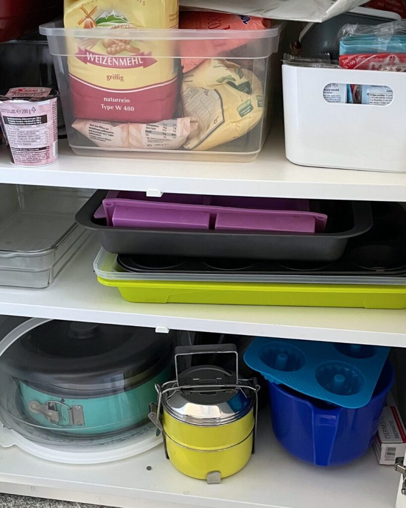 Passende Ordnungsprodukte … Bei Bedarf nehmen wir passende Ordnungshelfer (Boxen, Vorratsgläser, etc.) gleich mit. Du behältst nur, was passt und gefällt. Die Produkte werden separat zum UVP abgerechnet.